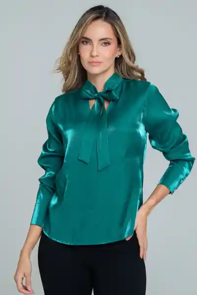 En Seda Fondo Entero Con Brillo Cuello Con Mascada y Escote en V Manga Larga Con Puño y Botones.