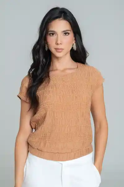 En Tejido Plano Especial Escote Redondo Manga Rodada Fajón Enresortado en Posterior Con Elástico de 4 cms y Liso en Delantero Silueta Amplia.
