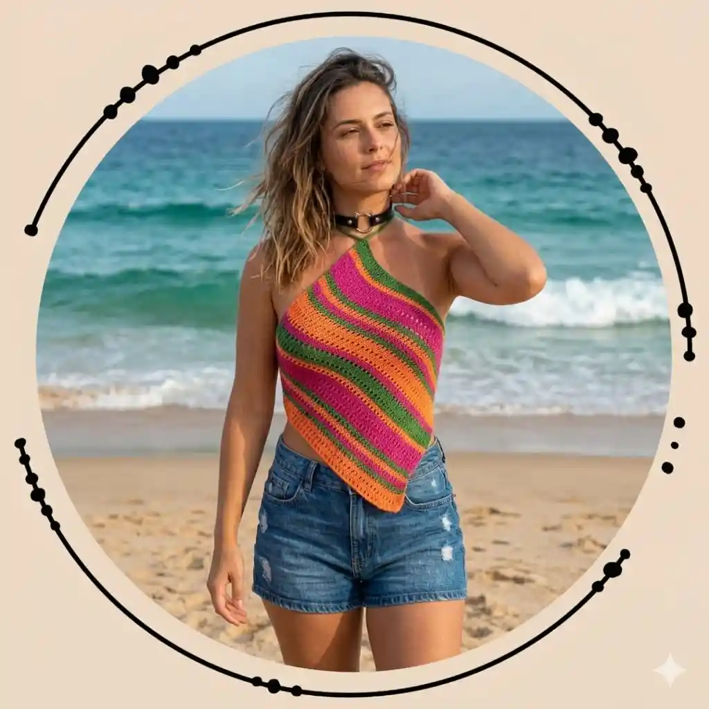 Blusa tejida a crochet forma de rombo espalda cruzada