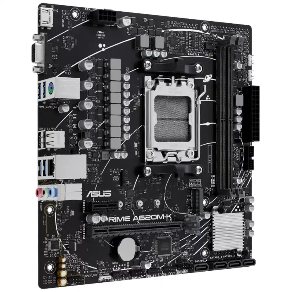 ASUS Prime A620M-K: Rendimiento Esencial y Conectividad Moderna 💻 La serie Prime de ASUS está diseñada para aprovechar todo el potencial de los procesadores AMD Ryzen™. Con un diseño de energía robusto y opciones de enfriamiento integrales, esta placa Micro-ATX ofrece a los usuarios diarios y a los constructores de PC una gama de opciones de ajuste de rendimiento a través de funciones de software y firmware intuitivas. Socket: AMD AM5 (compatible con procesadores Ryzen™ series 9000, 8000 y 7000) Memoria: Soporte para DDR5 de última generación con tecnología para mejorar el rendimiento de los módulos Almacenamiento: Ranura M.2 PCIe 4.0 para transferencias de datos a alta velocidad Conectividad: Ethernet de 1 Gb Realtek con protección ASUS LANGuard Puertos: USB 3.2 Gen 1 Tipo-A para transferencias rápidas y múltiples opciones de expansión Refrigeración: Disipador térmico de PCH y controles inteligentes Fan Xpert para un funcionamiento silencioso y fresco Protección: Tecnologías 5X Protection III para una durabilidad a largo plazo de los componentes Audio: Diseño de audio premium con capas de PCB dedicadas para una mayor claridad Garantía: 12 meses (1 año)