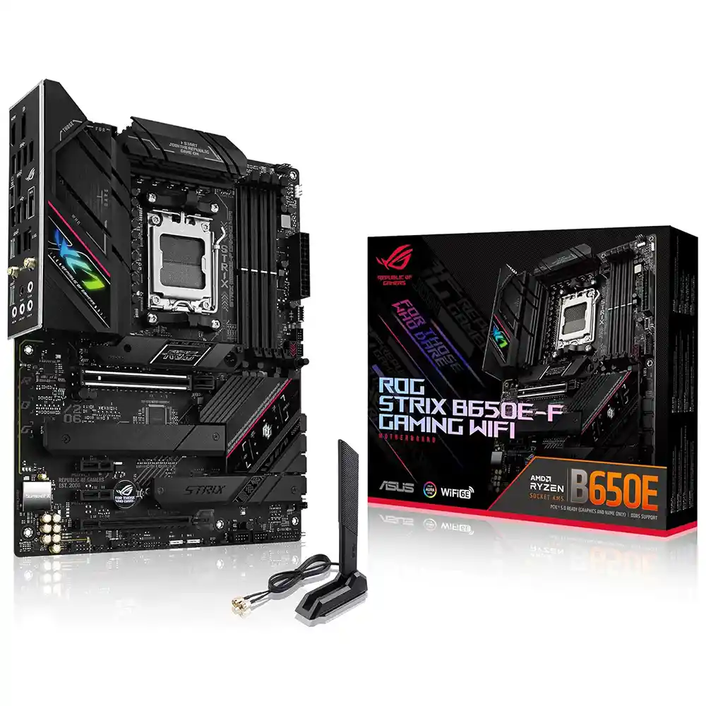 ROG STRIX B650E-F GAMING WIFI: Rendimiento de Élite y Conectividad Total 🦅 La ROG Strix B650E-F combina una entrega de potencia robusta con tecnologías de próxima generación para llevar el rendimiento de los procesadores AMD Ryzen™ al límite. Al ser una placa con chipset "E" (Extreme), ofrece soporte nativo para PCIe 5.0 tanto en la ranura de video como en el almacenamiento, asegurando que tu sistema esté preparado para los componentes más rápidos del futuro. Socket: AMD AM5 (compatible con procesadores Ryzen™ series 9000, 8000 y 7000) Chipset: AMD B650E (Soporte completo para PCIe 5.0) Memoria: Soporte para DDR5 de alta velocidad con perfiles AMD EXPO™ Gráficos y Almacenamiento: Ranura PCIe 5.0 x16 y ranura M.2 PCIe 5.0 para máxima velocidad Conectividad: Wi-Fi 6E y Ethernet Intel de 2.5 Gb para una red ultra rápida y estable Energía: 12+2 etapas de potencia para un overclocking estable y eficiente Audio: ROG SupremeFX ALC4080 con amplificador Savitech SV3H712 para un sonido cristalino Diseño ROG: Iluminación Aura Sync RGB y diseño "DIY Friendly" con botón Q-Release para la tarjeta de video Garantía: 12 meses (1 año)