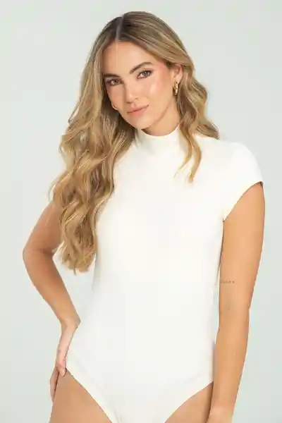 En Tejido de Punto Fondo Entero Cuello Alto Que Botona en la Parte Trasera Del Cuello Con Botones de Pata 16L Tono a Tono Manga Corta Broches en la Parte Inferior de la Tanga Silueta Semi - Ajustada.