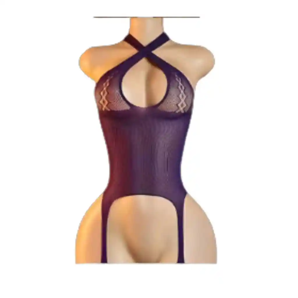 Body Lencería Sexy Tipo Suéter de Malla – Diseño Cruzado Este body de lencería está diseñado para realzar la figura con un estilo sensual y moderno. Su tejido de malla elástica se adapta perfectamente al cuerpo, brindando comodidad y un ajuste que define las curvas de manera favorecedora. Cuenta con un escote halter cruzado que aporta un toque sofisticado, junto con detalles tejidos en el busto y aberturas estratégicas que hacen la prenda aún más atractiva. El diseño tipo liguero en la parte inferior añade un acabado elegante y provocador. Material: Malla elástica suave Talla: Única (se ajusta a cuerpos S–L) Color: Morado / Vino Estilo: Sexy, moderno y femenino Ajuste: Diseño de una sola pieza con tiras tipo liguero Perfecto para sorprender en una noche especial o para quienes buscan una pieza íntima diferente y seductora.