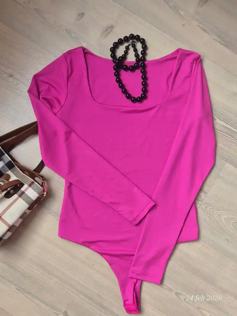 Body manga larga fuccia, cuello cuadrado talla única