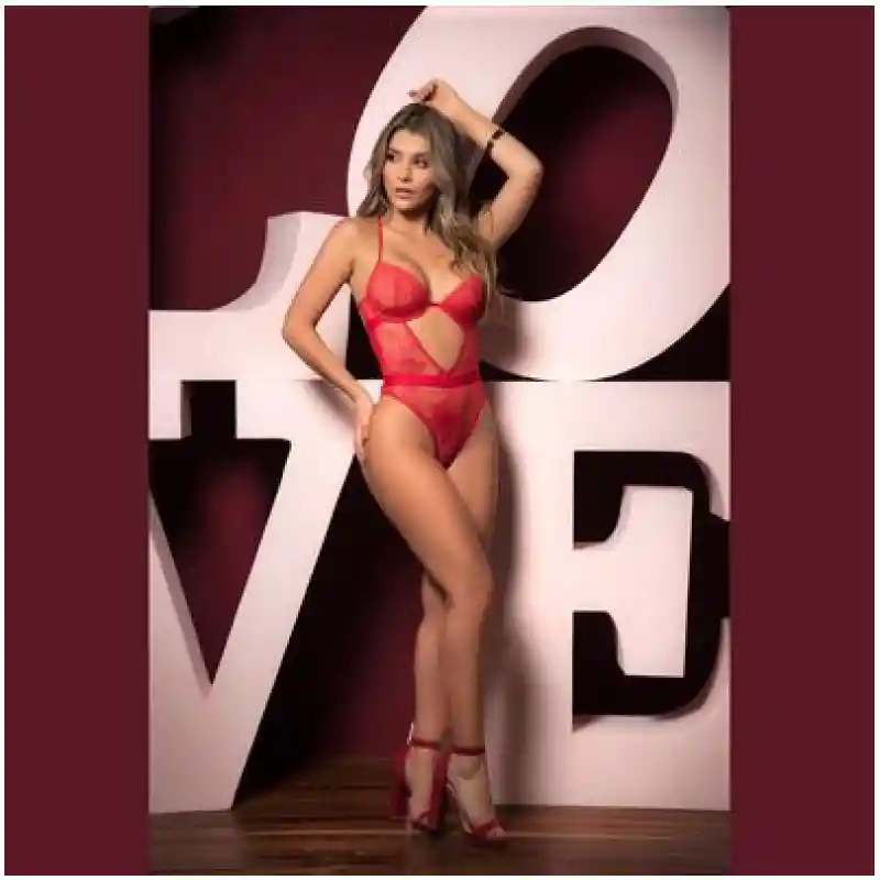 Incluye: Body en encaje Color: Rojo Talla: SM-ML Material: 78% polyester - 22% spandex
