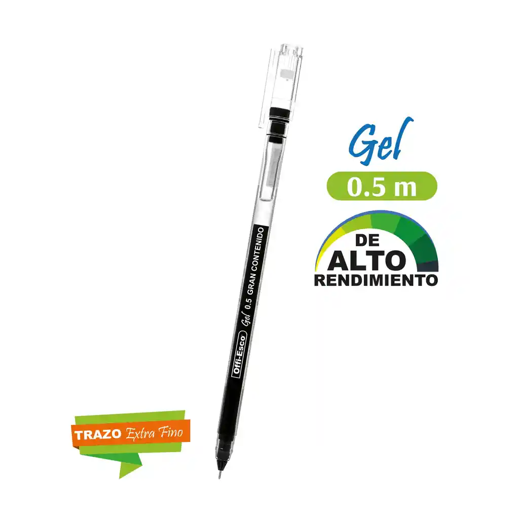 Bolígrafo gel 0.5 m Bolígrafo en Gel Mina 0,5m Color negro TRAZO EXTRA FINO Alto rendimiento Caja x 80 Displays x 12 Unds.