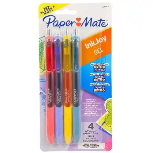 Revive el encanto del pasado con el set de bolígrafos InkJoy Paper Mate Retro Accents x4, una colección especial inspirada en tonos vintage que transforma cada trazo en una experiencia creativa. Perfectos para quienes buscan color, estilo y suavidad en cada palabra. ¿Qué es? Son bolígrafos de gel con colores vibrantes de inspiración retro, diseñados para brindar una escritura suave y brillante. Su tinta tipo pintura resalta tanto en papel claro como oscuro, ideal para trabajos creativos, lettering y notas con personalidad. Ficha Técnica Tipo de tinta: Gel con acabado brillante Colores: Edición especial Retro Accents Punta: Mediana 0,7 mm Mecanismo: Retráctil Agarre: Ergonómico y suave, envuelve todo el bolígrafo para mayor comodidad Compatibilidad de superficies: Papel claro y oscuro Recomendación de uso: Evitar papel brillante, liso o estucado Presentación: Pack por 4 unidades ¿Para qué sirve? Estos bolígrafos son ideales para: Bullet journaling y organización creativa Acentuar textos o resaltar ideas Dibujar y hacer garabatos Crear tarjetas, etiquetas y manualidades Escritura diaria con un toque de nostalgia Con los InkJoy Retro Accents, cada palabra se convierte en una oportunidad para añadir estilo y personalidad a tus proyectos.