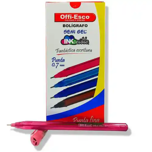 Bolígrafo Offi-Esco semigel OE-077F 0.7mm X12 fucsia Tinta Semi-Gel, Cuerpo Triangular, Suavidad incomparable, Colores vivos e intensos, Agradable escritura sin interrupciones, tapa antiasfixioa, clip resistente, Gran rendimiento, Diseño Avanzado, Novedoso agarre con superficie arenosa, punta de carburo de tungsteno