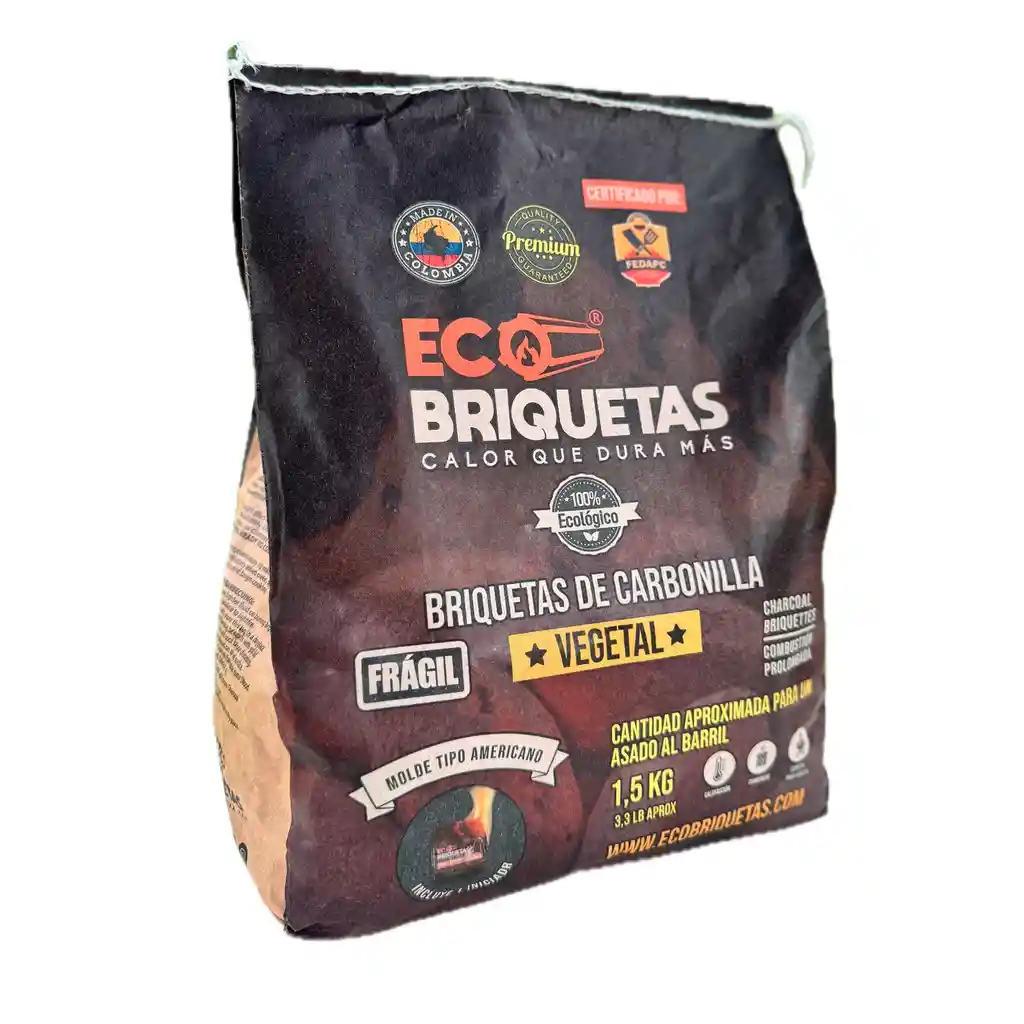 Las Ecobriquetas están revolucionando los asados en parrilla y barril porque son briquetas de cáscara de coco y carbonilla vegetal prensada, ecológicas porque evitan la tala para producir carbón, y gracias nuestra fórmula hemos encontrado la manera que las briquetas te duren hasta 4 veces más que el carbón