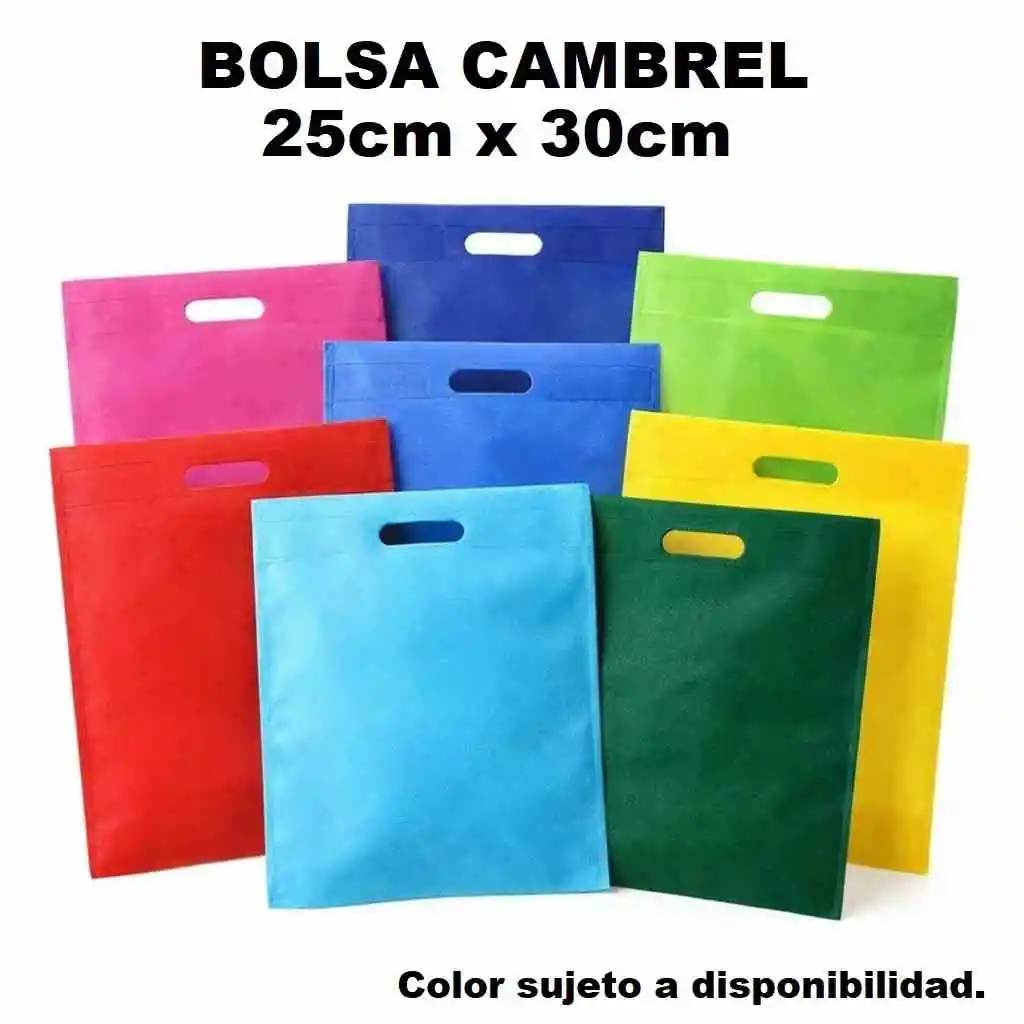 Bolsa cambrel de 30x25 cm, práctica, liviana y resistente. Perfecta para transportar productos en tu día a día o para uso comercial. Se envía en color disponible al momento del pedido. “Si deseas un color específico, escríbelo en comentarios (sujeto a disponibilidad)”