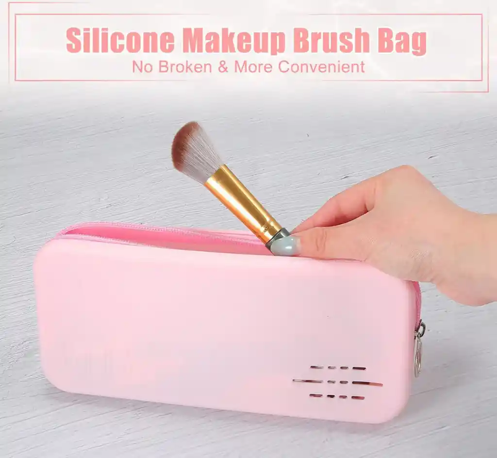 El estuche de silicona para brochas de maquillaje es adecuado para guardar cosméticos diarios, brochas de maquillaje, lápices labiales, cepillos de dientes, lápices, lápices de cejas, etc. El soporte para brochas cosméticas para el rostro presenta un diseño de cremallera con aberturas laterales que permiten un fácil acceso a sus elementos esenciales de viaje para maquillaje y evitan el maquillaje. cepillos de dispersión. El portaescobillas cosmético es fácil de limpiar y enjuagar con un poco de agua y jabón sin romperse ni distorsionar su forma. Medida 24x12cm