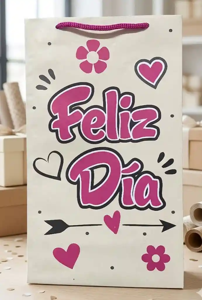 🌸 Bolsa de Regalo "Feliz Día" - Rosado Pastel 🌸