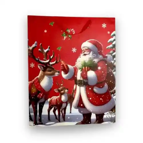 Bolsa De Regalo Navideña Fina Lisa Talla Jumbo Gigante: ALTO: 55cm ANCHO: 43cm Sorprende a tus seres queridos con una presentación espectacular. Nuestra Bolsa de Regalo Navideña Fina Lisa en talla Jumbo es perfecta para envolver esos regalos grandes, especiales y llenos de emoción. Su diseño elegante, resistente y con acabado fino la convierte en la elección ideal para darle un toque sofisticado a tus empaques navideños.