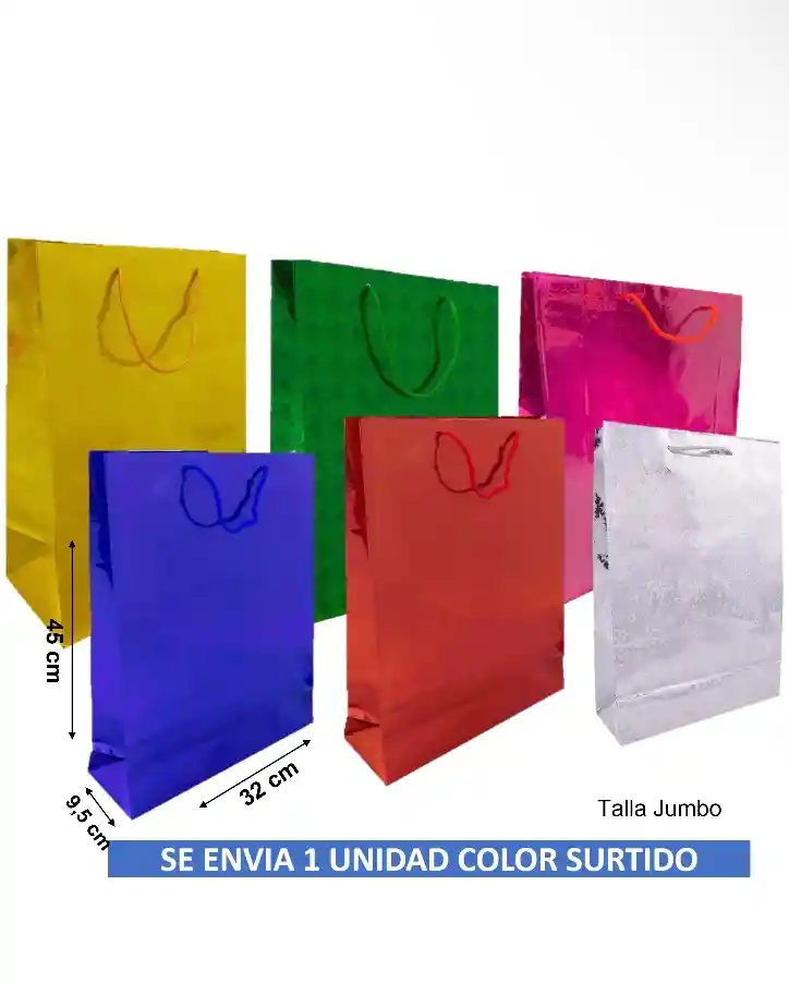 Bolsa De Regalo Metalizada Jumbo 32Cm ancho X 44 Cm alto SE ENVÍA UNA UNIDAD EN COLOR SURTIDO