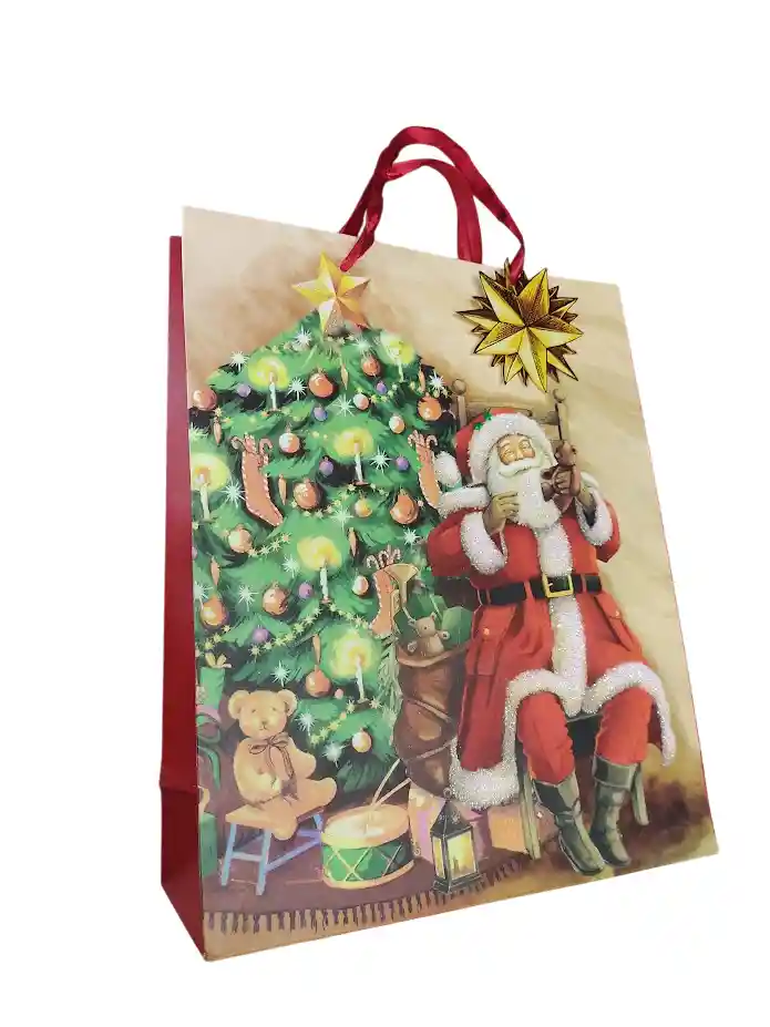 Bolsa De Regalo Navidad Papa Noel Sentado Arbol De Navidad Grande Mediana 32 Cm X 25 Cm