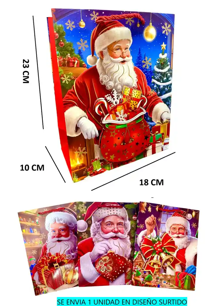 Bolsa De Regalo Navidad Pequeña 23 CM Cm X 18 Cm Diseños Surtidos. Unidad de vente 1 bolsa. se envia diseño segun disponibilidad.