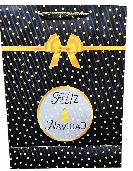 bolsa de regalo navideña, figuras navideñas moño amarillo, - 42 X 31 X 12.