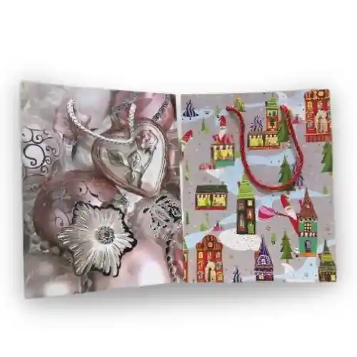 Bolsa De Regalo Navideña Cartulina Metálica Fina Lisa Talla M : ALTO: 23CM, ANCHO: 18CM Prepárate para sorprender a tus seres queridos con esta Bolsa de Regalo Navideña de Cartulina Fina Lisa. Encantadora, práctica y lista para realzar la magia de la Navidad en cada regalo que compartes. ¡Haz que esta temporada sea aún más memorable con esta bolsa de regalo de tamaño M!