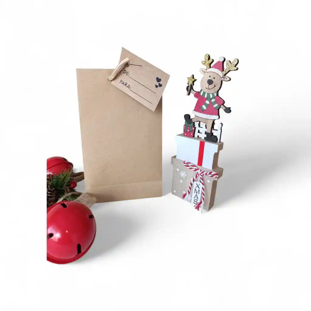 BOLSA DE REGALO PAPEL KRAFT PARA NAVIDAD U OTRA OCASIÓN. (Número 1 en la foto- talla s) Medidas: alto: 18 cm , ancho: 11.5, fondo 4.5 cm No incluye elementos decorativos de la forto