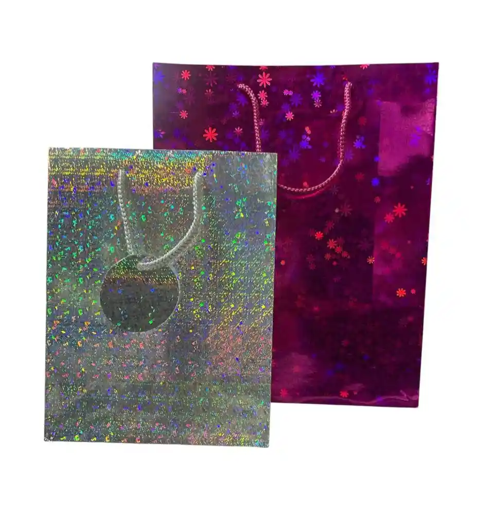 ¡El empaque perfecto para tus detalles más especiales! ✨🎁 No dejes que el tamaño te engañe: esta bolsa está diseñada para brillar. Con un acabado holográfico de alta calidad que cambia de color según la luz, es la opción ideal para entregar regalos con elegancia y estilo. ✨Efecto Brillante: Acabado metalizado/holográfico premium. 👌Dimensiones: 18cm ancho x 23 cm alto. Resistente: Incluye manija de cordón reforzada y tarjeta de regalo.Diseños: Disponibles en una variedad de colores vibrantes (Azul, Plata, Rosa, Oro). 📍 ¡Agrégala a tu pedido en IMPREKOLOR SAS y entrega un regalo inolvidable! 📲 315 388 09960
