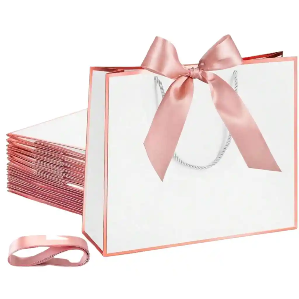 🎀 Bolsa de regalo elegante con lazo rosa Añade un toque de sofisticación a tus obsequios con esta delicada bolsa de papel kraft en color blanco con bordes rosados. Su diseño incluye un lazo decorativo al frente y asas de cuerda blanca que combinan funcionalidad con estilo. Ideal para ocasiones especiales como cumpleaños, bodas, aniversarios o celebraciones temáticas. 📏 Dimensiones: Ancho: 19 cm (7.48 in) Alto: 15 cm (5.91 in) Profundidad: 7 cm (2.76 in) ✨ Perfecta para envolver joyería, cosméticos, pequeños accesorios o detalles personalizados. Su tamaño compacto y presentación cuidada la convierten en una opción ideal para destacar tus regalos con elegancia.