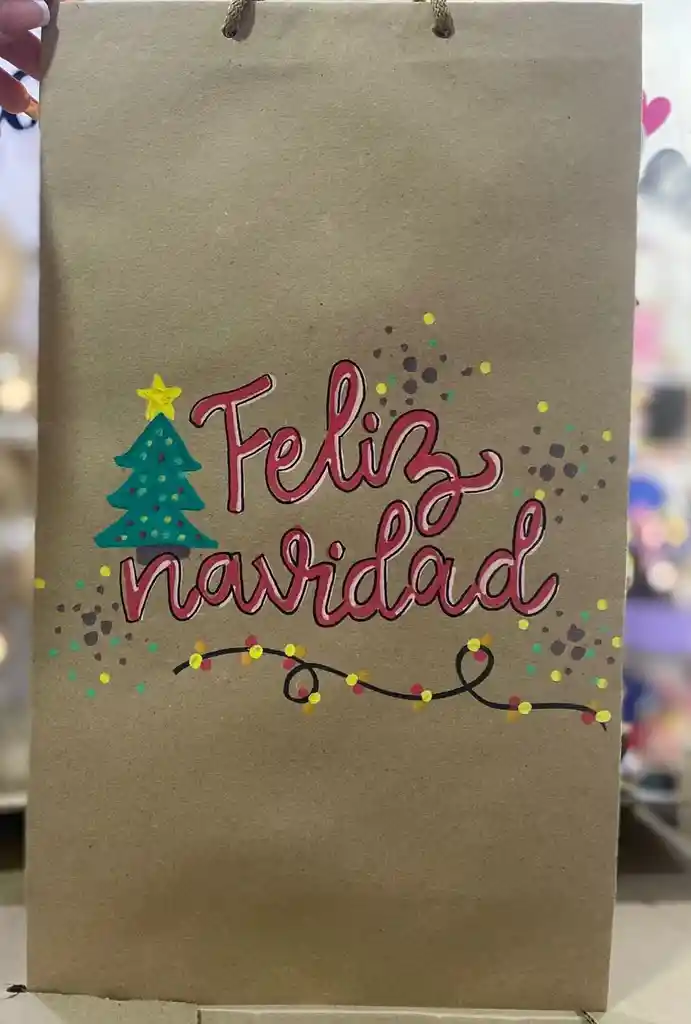 Bolsa Kraft Navideña Grande Tamaño: 24 x 41 cm aprox