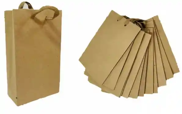 Con unas dimensiones de 19 cm de altura y 13 cm de ancho, esta bolsa es perfecta para transportar productos de manera eficiente y responsable con el medio ambiente. Su diseño en marrón claro y material Kraft le otorgan un aspecto natural y elegante, ideal para cualquier ocasión. Diseñada con una manija resistente, facilita el transporte y uso diario, convirtiéndola en una opción versátil para tiendas, ferias o eventos.