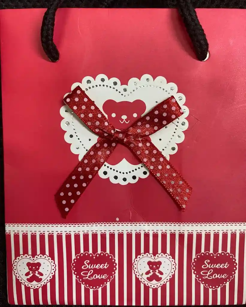 Bolsas de Regalo. Paquete de 12. 13 cm alto y 11 cm ancho y 7 cm profundo. Dice ´dulce amor´.