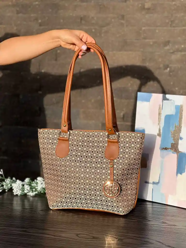 * Bolso clásico * Material sintético * Frente yute * Alto 25 CMS * Ancho 33 CMS