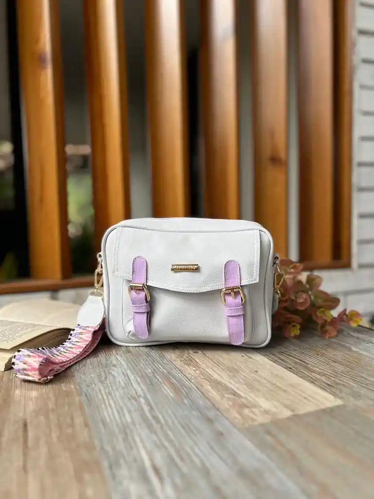 •Manos libres •Material sintético enquesillado •Herrajes de lujo dorados •Alto 20 •Ancho 26