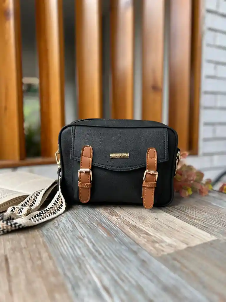 •Manos libres •Material sintético enquesillado •Herrajes de lujo dorados •Alto 20 •Ancho 26