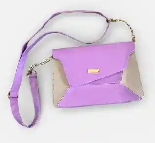 Bolso Para Mujer Bandolero Cruzado Color Lila Con Beige Con Correa. Medidas: 17cm Alto X 21cm Ancho.