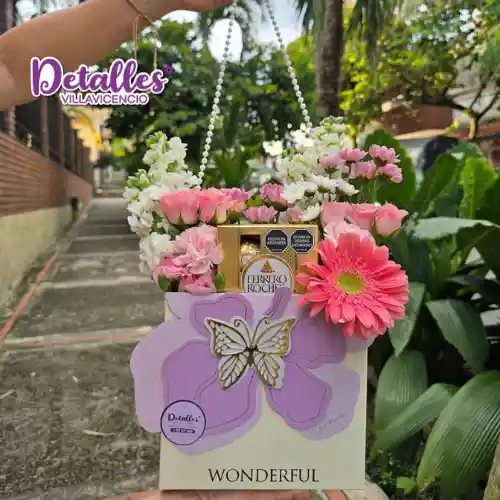 Caja de cartón estampada estilo flor Flores naturales en colores sujetos a disponibilidad Ferrero Rocher x4unidades Decoración