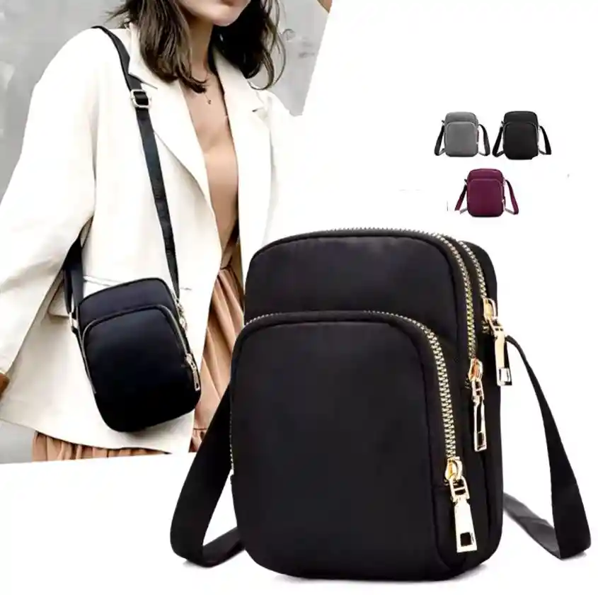 Bolso Portacelular Lona Negro Gris VinTinto