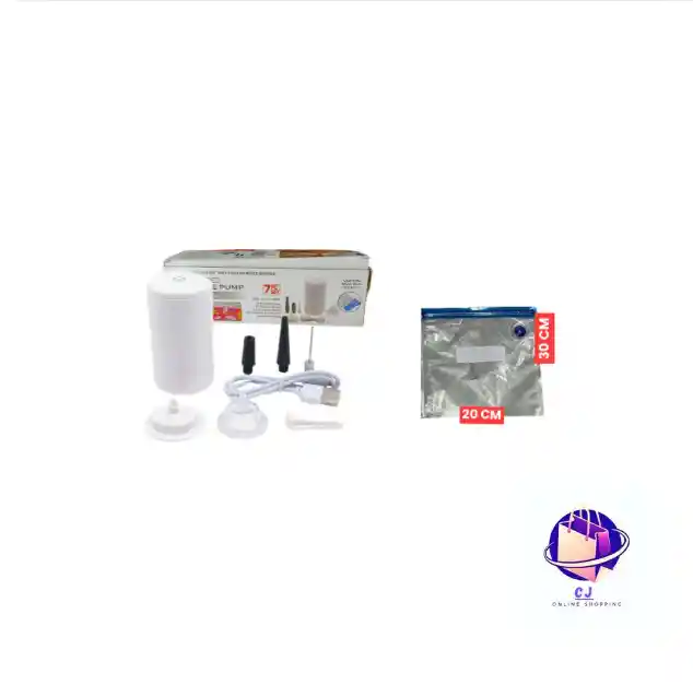 Dispositivo práctico que extrae el aire de bolsas de almacenamiento para ahorrar espacio y conservar mejor ropa, alimentos u otros artículos.