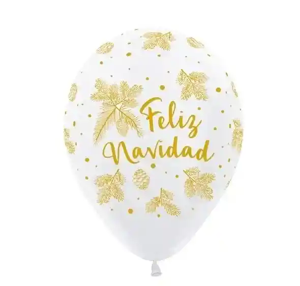 Bomba Feliz Navidad Blanca con dorado R12, Paquete x10 unidades.Para inflar su letrero, números, globos metalizados y globos de látex, tenemos disponible en nuestra tienda el INFLADOR MANUAL. No olvide incluirlo en su pedido EAN 7703340171050