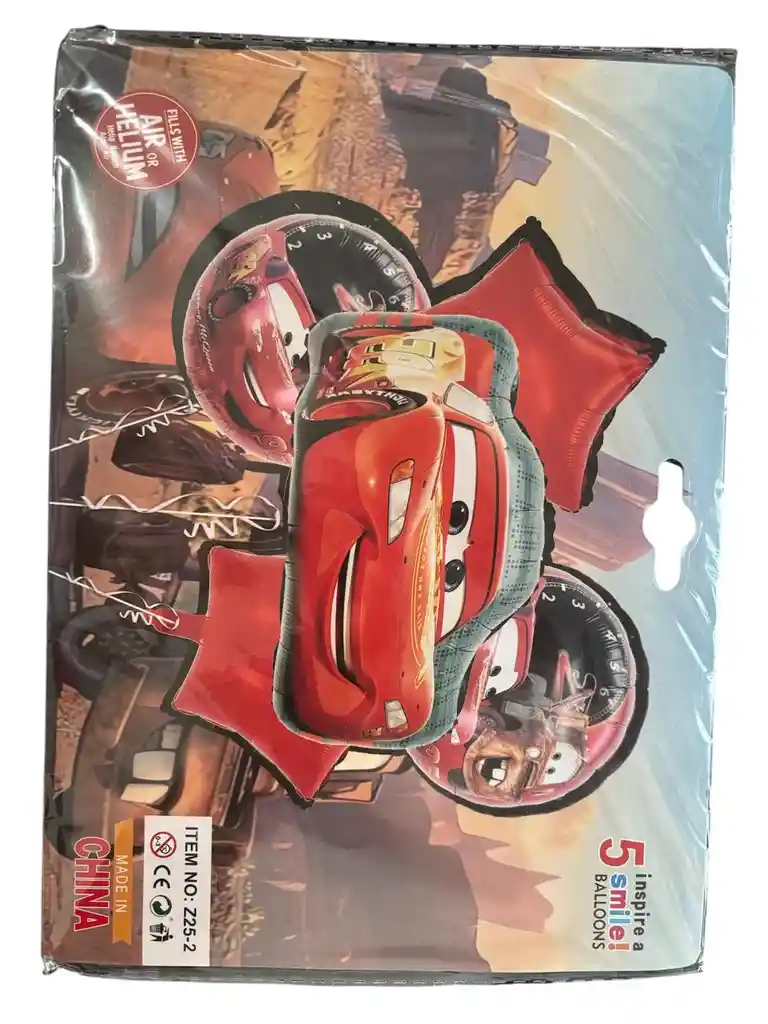 BOMBAS GLOBOS POR 5 PIEZAS DISEÑO PELICULA CARS PARA DECORACION DE FIESTAS NIÑO O HOMBRE O MUJER