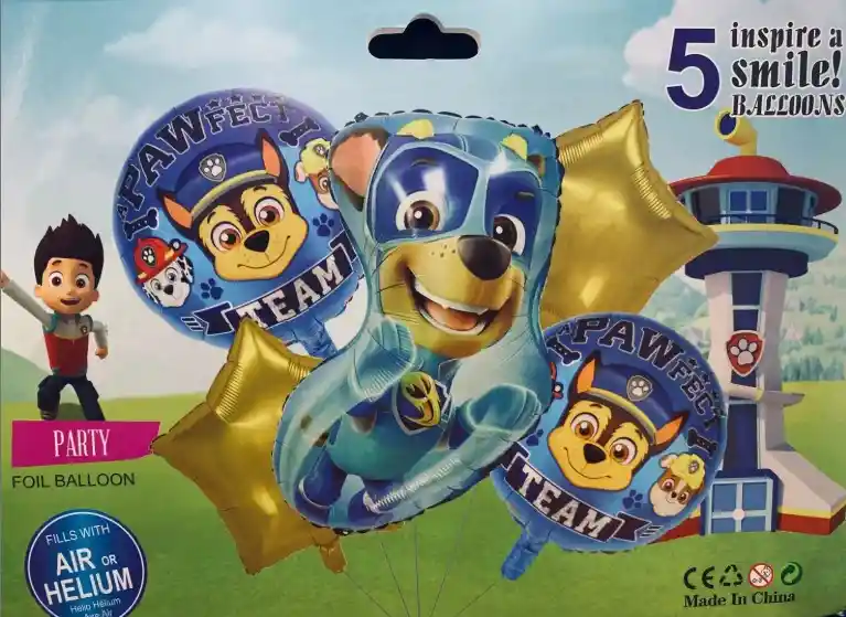 BOMBAS GLOBOS POR 5 PIEZAS DISEÑO PAW PATROL PARA DECORACION DE FIESTAS NIÑO O HOMBRE O MUJER