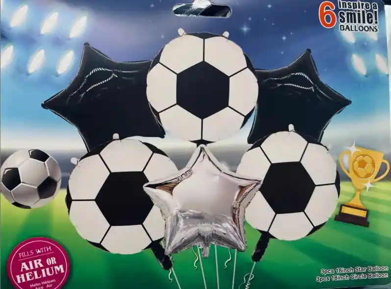 BOMBAS GLOBOS POR 5 PIEZAS DISEÑO FUTBOL BALON PARA DECORACION DE FIESTAS NIÑO O HOMBRE O MUJER
