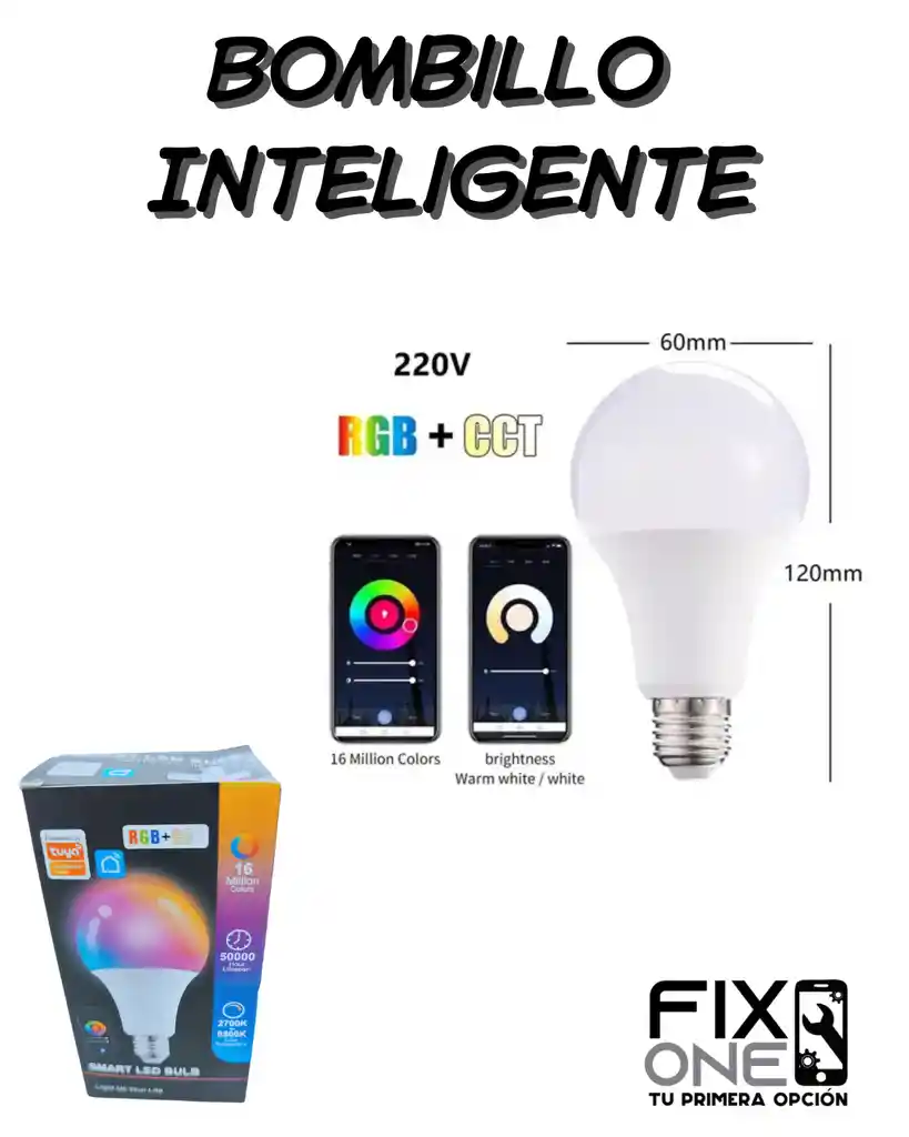 Bombilla Inteligente efectos especiales Especificación del soporte de la lámpara: E27 Vida útil: 30000 h Método de control remoto: control remoto Modo de fuente de alimentación: fuente de alimentación: bombilla LED inteligente RGB+CCT, bombilla LED Wi-Fi compatible con 16 millones de cambios de color, brillo y temperatura de color ajustables (luz blanca cálida/blanca) con modo de escena y función de sincronización de música, compatible con la función de temporización, compatible con el control Tuya Wi-Fi y Bluetooth, diámetro 60 mm, voltaje de trabajo 220 V