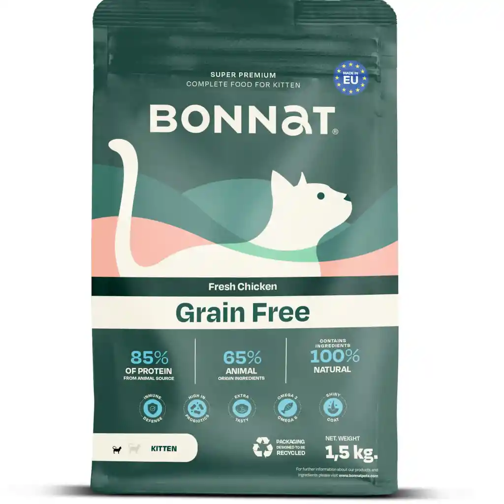 Alimento Super Premium Grain-Free, con 85% de Proteína de Origen Animal, 65% de Ingredientes de Origen Animal y con Ingredientes 100% Naturales, Específico para Gatitos Cachorros de Hasta los 12 Meses de Vida. Ayudará a los Gatitos Cachorros a Potenciar su Desarrollo y Crecimiento, Protegiendo la Piel y el Pelaje, Manteniéndolos Sanos y con un Sistema Inmunológico Activo, Permitiéndoles Estar Sanos y Fuertes Durante Toda su Vida. Con Alto Nivel de Probióticos que Ayudan a Estimular y Mantener la Salud Intestinal.