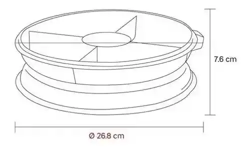 De la línea de servir: un complemento ideal para tus pasabocas, cuenta con 4 divisiones y en el centro tiene un potecillo de cierre hermético para dips y salsas, tiene un sello o tapa que puede usarse como plato de servir, ideal para transportar, refrigerar o servir a la mesa lo mejor de tus botanas. Medidas: Ø 26,8 x 7,6 cm de alto y el potecillo Ø 0,8 x 5,4 cm de alto. Producto plástico libre de BPA