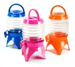 Barril Dispensador De Liquido Plegable Con Base 5.5L La construcción de plástico seguro para alimentos sin BPA le asegura que ningún químico dañino se contaminará el liquido del interior para su seguridad y tranquilidad. Se puede llenar con agua u otras bebidas. La gran capacidad de 5.5 litros permite que el dispensador contenga una cantidad adecuada de líquido para mantenerte hidratado. El asa de transporte y el grifo integrados hacen que sea fácil de transportar y transportar, con el grifo integrado que evita derrames cuando se usa y evita el desperdicio de su bebida. Se pliega para un almacenamiento fácil y compacto, lo que lo hace ideal para acampar, viajar o festivales. Peso total: 0.36Kg Medida expandido: 25 x 23 x 16 cm Medidas plegado: 11 x 23 x 16 cm Colores: Azul, Rosado y Naranja