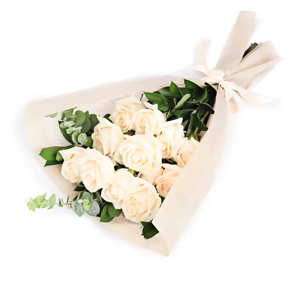 Bouquet De 12 Rosas Blancas Y Follaje. La Foto Es Referencial, Las Flores Y Colores Sujetos A Disponibilidad. Si Deseas Agregar Un Mensaje Y Remitente, Déjalo En El Chat.