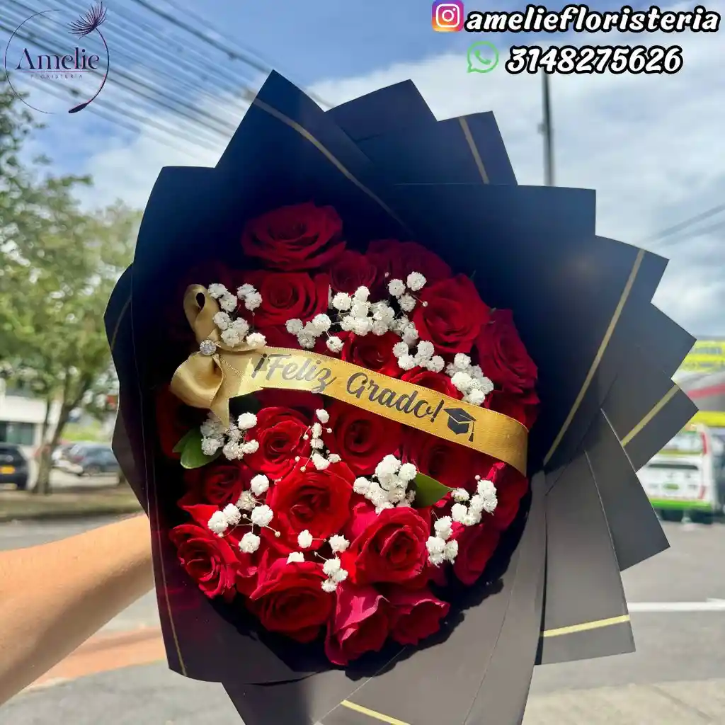 Bouquet 24 Rosas Rosas Rojas Feliz Grado!