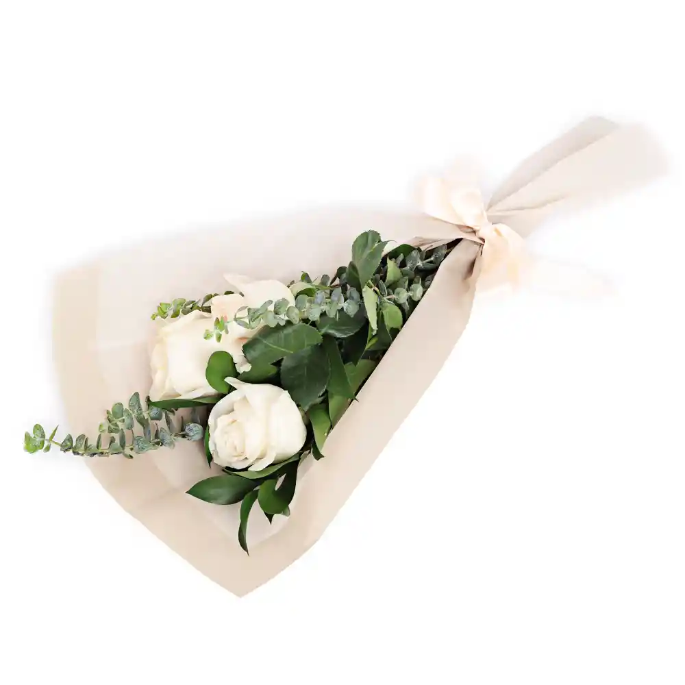 Bouquet De 3 Rosas Blancas Y Follaje. La Foto Es Referencial, Las Flores Y Colores Sujetos A Disponibilidad. Si Deseas Agregar Un Mensaje Y Remitente, Déjalo En El Chat.