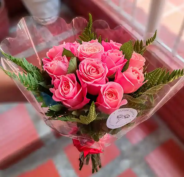 Bouquet de 6 preciosas rosas rosadas acompañado de su bello follaje de rusco y un listón 🎀 para darle un toque hermoso. 💐🥰 Tu mejor opción para tu mejor regalo. 🌹