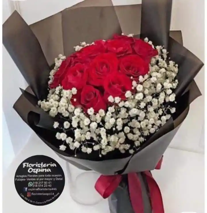 Cuando el amor se viste de gala, nace este ramo: un corazón de rosas rojas intensas, rodeado por la delicadeza etérea de la gypsophila blanca, todo envuelto en un elegante papel negro que resalta la pasión y el misterio. Un detalle sobrio, seductor y lleno de significado, perfecto para declarar un amor profundo, celebrar un aniversario o simplemente dejar sin aliento a quien lo reciba. Este ramo no grita... susurra cosas que solo el corazón entiende. 💋🔥 💌 Incluye tarjeta personalizada. ¿No sabes qué escribir? Te dejamos una idea: "Si mis labios no se atreven a decirlo, que lo digan estas flores: te amo con la intensidad de cada latido." ❤️🔥 ✨ Solo en Floristería Ospina, donde el amor florece con estilo.
