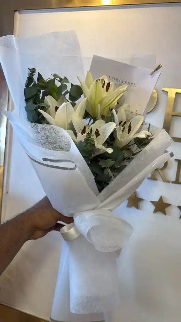 5 claveles blancos, eucalipto y mensaje personalizado