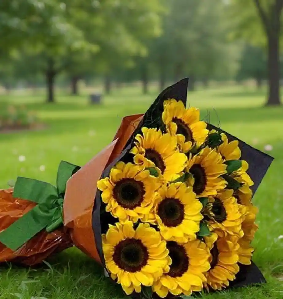 Un bouquet lleno de luz y frescura que transmite alegría y optimismo. Elaborado con 12 girasoles frescos, acompañados de solidago, rusco y envuelto en papel coreano, logrando una presentación natural y equilibrada. Ideal para celebrar, agradecer o iluminar cualquier momento especial. ✨ Magia en cada flor.